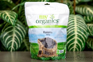 Product Description: Raisins pack more nutrition than their small size might indicate. When grapes are dehydrated to produce raisins, the nutrients become more concentrated, making a handful of raisins a snack rich in B vitamins, iron and potassium. Besides nutrients, raisins are also a good source of carbohydrates for energy. My Organics Raisins 500g are a rich and concentrated source of vitamins, minerals, electrolytes and energy. Perfect for baking, cereals, trail mixes and a variety of savory dishes, chutneys, salads and curries. Enjoy the great taste and health benefits of raisins with My Organics Raisins 500g