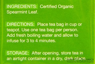 Product Description: Enjoy the clean, refreshing flavour of organic spearmint. Chill the infusion in summer for a thirst quenching ice tea.