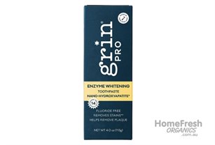 Experience a brighter, healthier smile with Grin Pro Enzyme Whitening with Nano-Hydroxyapatite—the ultimate natural whitening toothpaste. Clinically proven to remove stains and deliver visible results within 14 days, this peroxide-free formula is safe for daily use and gentle on sensitive teeth.
