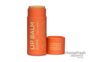 Guava: Theobroma Cacao (Cocoa) Seed Butter*, Cocos Nucifera (Coconut) Oil*, Carica Papaya (Papaya) Seed Oil, Helianthus annuus (Sunflower) Seed Wax, Euphorbia Cerifera (Candelilla) Wax, Alkanet Root Powder, Guava Flavour*. *Certified Organic