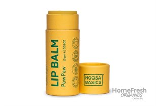 Theobroma Cacao (Cocoa) Seed Butter*, Cocos Nucifera (Coconut) Oil*, Carica Papaya (Papaya) Seed Oil, Helianthus annuus (Sunflower) Seed Wax, Euphorbia Cerifera (Candelilla) Wax, Sea Buckthorn Seed Oil, Paw Paw Flavour*. *Certified Organic