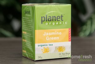A fragrant certified organic green tea, infused with the delicate aroma of jasmine blossoms. Planet Organic Jasmine Green Tea has a mild refreshing flavour with a pale golden colour. It is usually enjoyed with oriental cuisine.