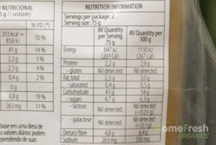 Ingredients: maize starch, sour dough 28% (rice flour, water), water, rice syrup, apple fibre, sunflower oil, rice starch, soya protein, sugar, thickener: hydroxypropyl methyl cellulose, yeast, salt. LACTOSE-FREE.